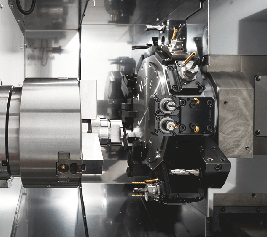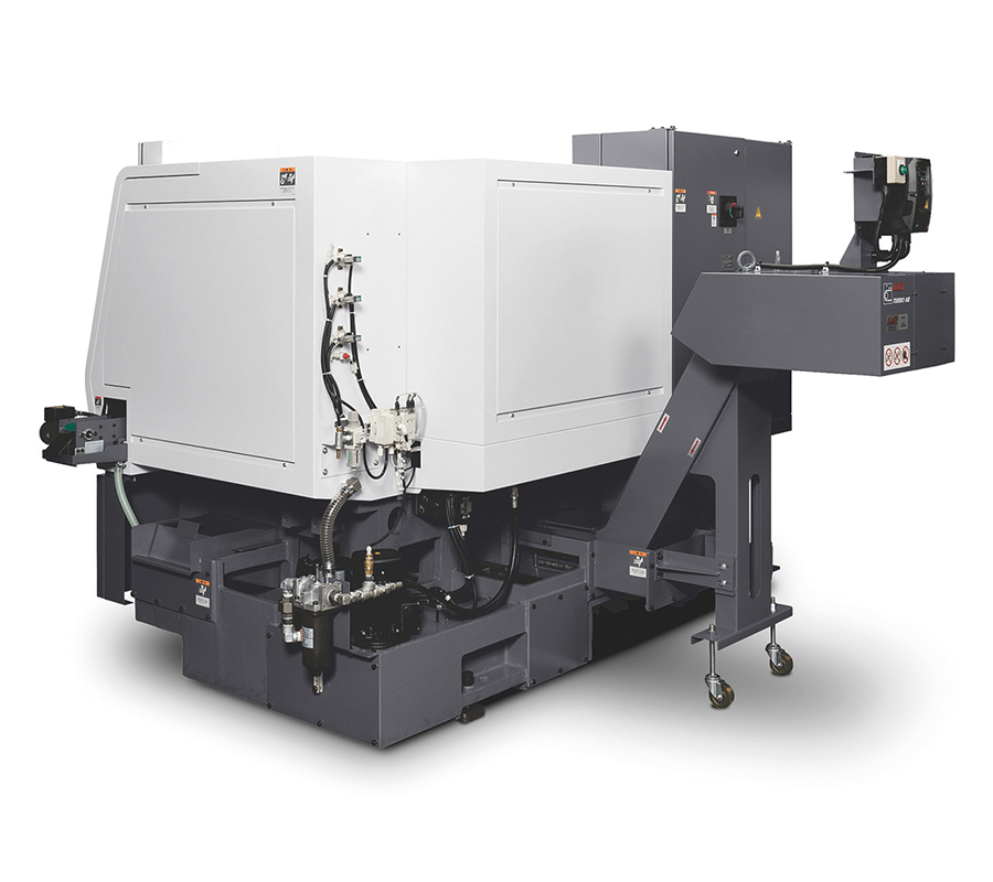雖然(rán)是1個主(zhǔ)軸1台轉(zhuǎn)塔的簡(jiǎn)單構造(zao),但可通(tōng)過搭配(pèi)動力卡(kǎ)盤以及(ji)選配後(hou)排式排(pái)屑機,與(yǔ)桁架式(shi)機械手(shǒu)組合,便(biàn)可實現(xian)卡盤機(ji)的自動(dong)化生産(chǎn)線。